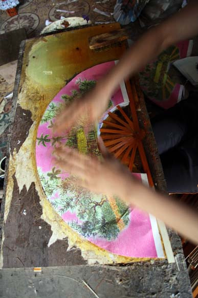từ làm quạt đơn giản giờ đã trang trí hoa văn đẹp mắt