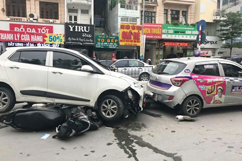 Theo một số nhân chứng, chiếc xe ô tô Huyndai đâm vào 2 xe máy và xe taxi lưu thông phía trước. Cùng lúc đó, 2 chiếc xe máy đi phía sau đã va vào xe buýt chạy tuyến Bác Cổ - Yên Nghĩa. Hậu quả khiến ít nhất 3 người bị thương, và đã được đưa vào bệnh viện cấp cứu.