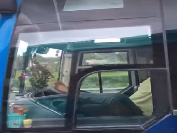 Tài xế gác chân lên vô lăng điều khiển xe, hành động này nhiều người cho rằng coi thường tính mạng nhiều hành khách