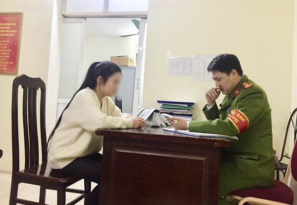 Chị L.T.V đến trình báo tại trụ sở CAP Mỹ Đình 2, quận Nam Từ Liêm, Hà Nội