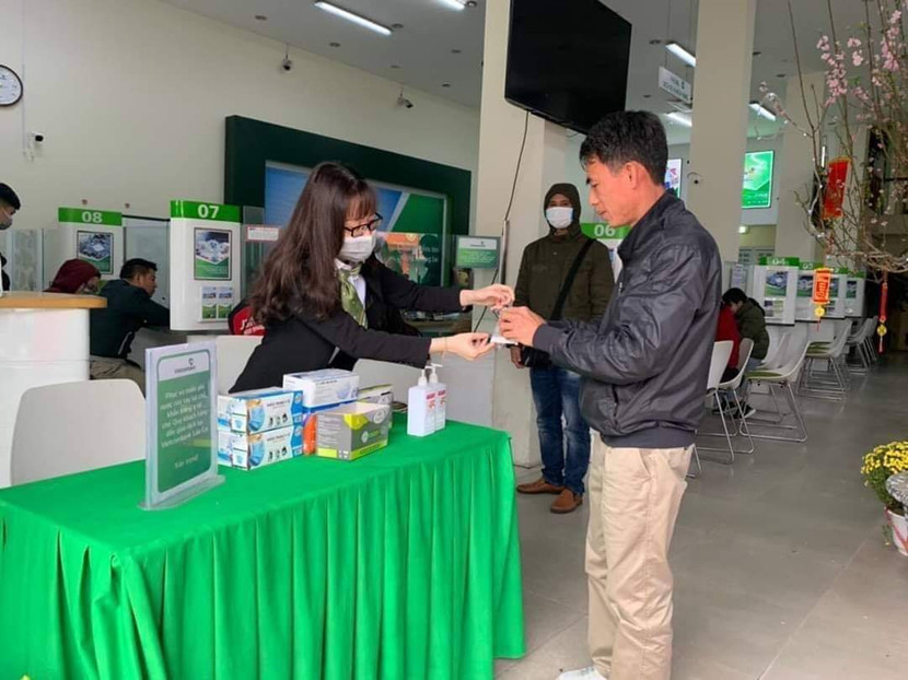 Nhiều ngân hàng đã cung cấp khẩu trang và nước rửa tay miễn phí cho khách hàng đến giao dịch