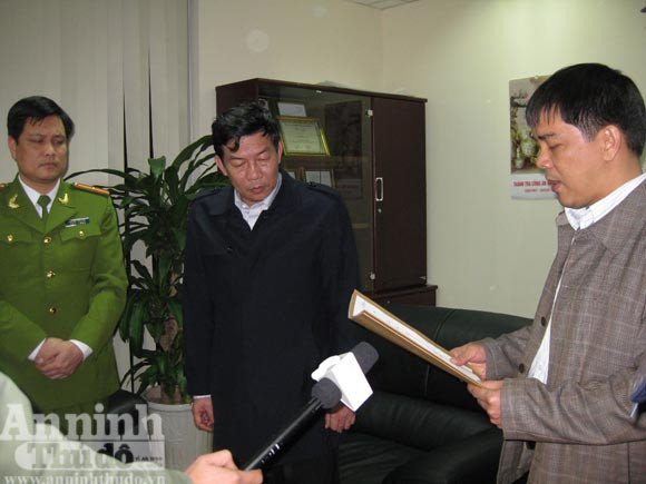 Cơ quan công an đọc lệnh khám xét đối với ông Hùng