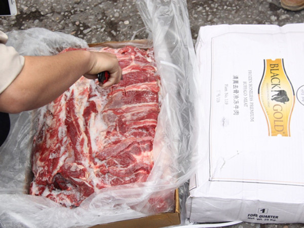 Quá trình khám xét phát hiện hàng hóa vi phạm số lượng lớn các hộp catton, có khối lượng ghi trên vỏ hộp là 25 kg, phía ngoài bìa ghi các chữ FROZEN BONELESS PREMIUM BUFFALO MEAT. Toàn bộ hàng hóa nghi là thịt trâu đông lạnh các loại đóng trong các thùng carton còn nguyên đai, nguyên kiện có tổng trọng lượng khoảng 170 tấn .