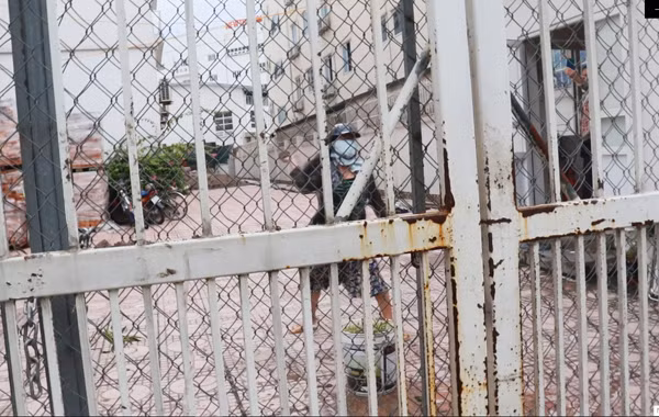Hình ảnh bà Vũ Thị Hồng ném cát vào lực lượng công an đang cắt khóa để giải cứu người