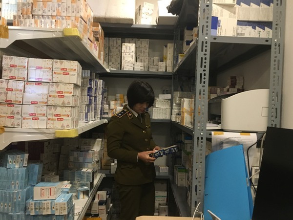 Cán bộ đội QLTT số 1 kiểm tra số tân dược