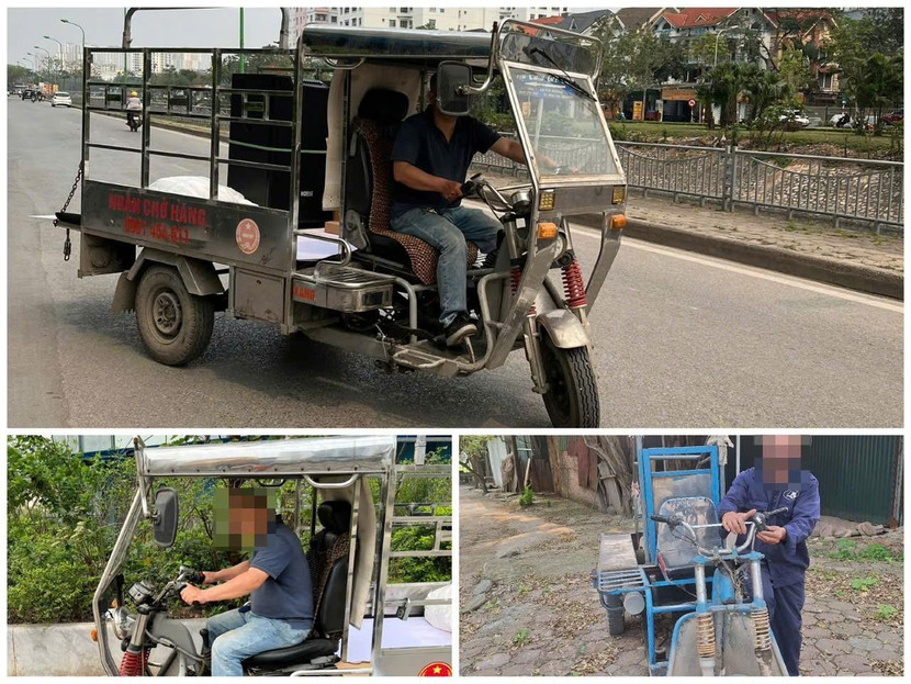 Cùng thời điểm trên, tại phố Trần Hòa (phường Đại Kim, quận Hoàng Mai), một tổ công tác khác phát hiện anh T.V.K (sinh năm 1978, trú tại huyện Lý Nhân, tỉnh Hà Nam) điều khiển xe ba bánh tự đóng để chở hàng. Làm việc với CSGT, người này cho biết, do kinh doanh đồ nội thất, nếu chở hàng bằng xe máy thì bất tiện, còn thuê ô tô lại tốn kém nên đã mua xe ba bánh để vận chuyển.