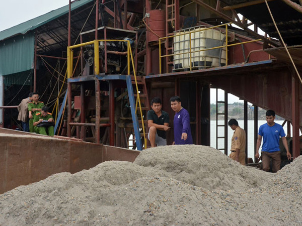 Tại thời điểm kiểm tra, các đối tượng đang có hành vi khai thác cát trái phép đổ sang tàu vận chuyển mang số hiệu PT2001 do Nguyễn Kinh Tài (SN 1979), Ngô Văn Khanh (SN 1986), Ngô Văn Mạnh (SN 1987), cùng có HKTT tại huyện Ba Vì, Hà Nội điều khiển. Tang vật thu giữ quả tang gồm 65m3 cát trên tàu PT2001.