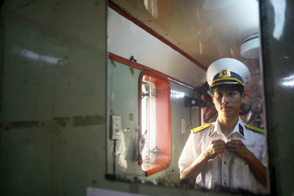 Lần đầu tiên ra nhà giàn, lần đầu tiên đi tàu, lần đầu tiên ăn tết ngoài biển, trên đường ra nhà giàn DK1/16 nhận nhiệm vụ, Thiếu úy Cường cũng bị say sóng không kém chúng tôi. Thế mà Cường vẫn nói : “Em tuổi Quý Tỵ, làm lính nhà giàn là hợp nhất rồi anh ạ”. Trong đêm sóng dữ dội, Cường nằm kể cho tôi nghe chuyện về người lính nhà giàn mà Cường rất thích. Đó là chuyện tình yêu của Trung úy Nguyễn Việt Dũng, nhà giàn DK1/2. Sau nhiều sóng gió, Trung úy Dũng và người yêu quyết định tổ chức đám cưới vào ngày 24 tết (năm 2008). Lúc đó toàn bộ đám cưới đã chuẩn bị đầy đủ. Bộ vest tinh tươm chỉ đợi chú rể từ nhà giàn về là mặc. Đúng lúc đó ngoài biển, sóng to gió lớn không thể cập thuyền, Trung úy Dũng phải xuống thuyền bằng cách đu dây. Về đến nhà, đám cưới đã xong ba ngày. Đêm tân hôn không chú rể, cô dâu ôm gối nằm khóc một mình… “Đến năm 2010, anh chị ấy mới làm đám cưới lại anh ạ, giờ vẫn hạnh phúc lắm. Đấy, yêu thế mới là yêu chứ”, Thiếu úy Cường tâm đắc.