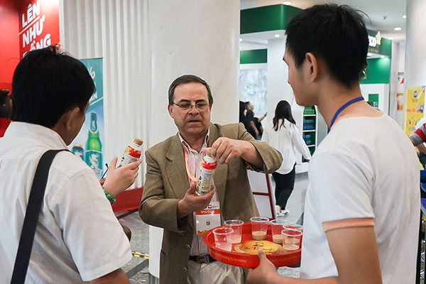 Khu gian hàng Việt Nam năm nay hội tụ nhiều thương hiệu uy tín hàng đầu. Xuất hiện cùng các thương hiệu mạnh trong và ngoài nước, Tập đoàn Tân Hiệp Phát là doanh nghiệp sản xuất nước giải khát Việt Nam đem đến nhiều trải nghiệm với không gian bày trí gian hàng mới lạ, ấn tượng, giới thiệu các sản phẩm có nguồn gốc tự nhiên, có lợi cho sức khỏe như Trà thanh nhiệt Dr Thanh, Trà xanh Không độ, Nước tăng lực Number 1…