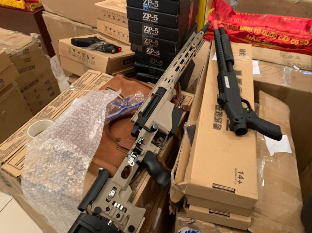 Tận thấy những khẩu súng đồ chơi được làm y như súng quân dụng, bị CSHS thu giữ