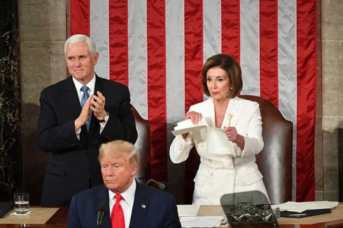 Chủ tịch Hạ viện Mỹ Nancy Pelosi xé nát bản sao Thông điệp liên bang của Tổng thống Trump