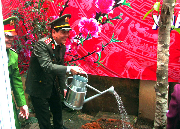 Thứ trưởng Bộ Công an Nguyễn Văn Sơn trồng cây lưu niệm tại CAQ Hai Bà Trưng