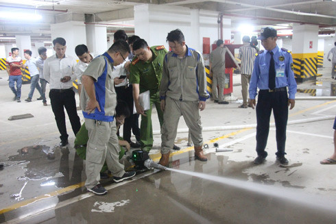 Lực lượng cảnh sát PCCC kiểm tra hệ thống bơm phun nước tại cơ sở