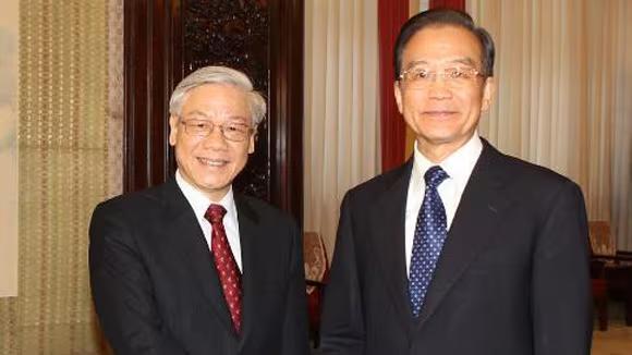 Tiếp tục chuyến thăm chính thức Trung Quốc, ngày 12-10, tại Trung Nam Hải ở Thủ đô Bắc Kinh, Tổng Bí thư Nguyễn Phú Trọng đã hội kiến Ủy viên Thường vụ Bộ Chính trị, Thủ tướng Quốc Vụ Viện Ôn Gia Bảo.