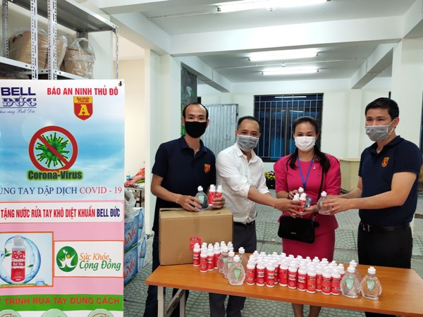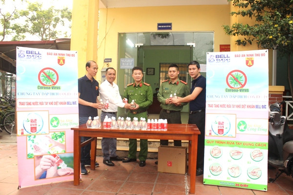 Ngay trong chiều 13-3, Thiếu tá Vũ Mạnh Hùng, Phó Tổng biên tập Báo ANTĐ và cùng với ông Trịnh Hữu Quảng, Giám đốc kinh doanh của Công ty TNHH Bell Đức đã mang gần 1.000 chai nước rửa tay diệt khuẩn trao tặng các địa điểm như CAP, UBND phường Dịch Vọng, Trung Hòa (quận Cầu Giấy) và CAP, UBND phường Trúc Bạch.