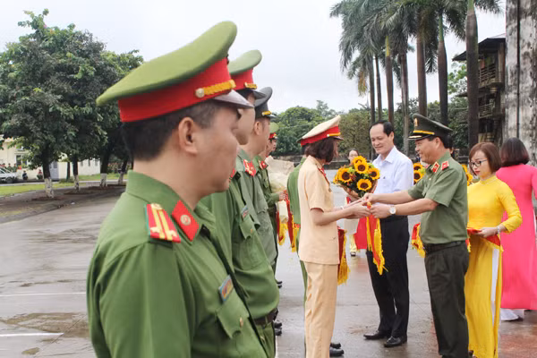 Thiếu tướng Đoàn Ngọc Hùng và ông Đỗ Mạnh Tuấn trao tặng khen thưởng cho tập thể CBCS CAQ Bắc Từ Liêm do đã nhiều thành tích xuất sắc trong công tác đấu tranh phòng chống tội phạm trên địa bàn