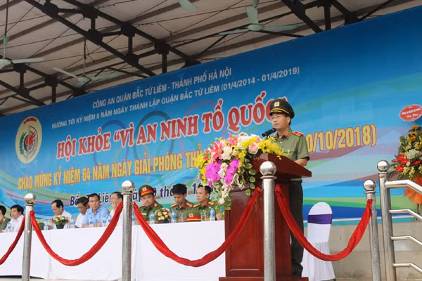 Thiếu tướng Đoàn Ngọc Hùng, Phó Giám đốc CATP Hà Nội phát biểu khai mạc hội khỏe