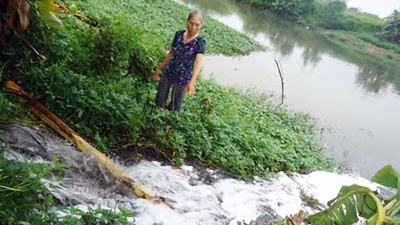 (Trong ảnh: Một vụ xả thải ra môi trường bị phát hiện xử lý ở Hà Nội)
