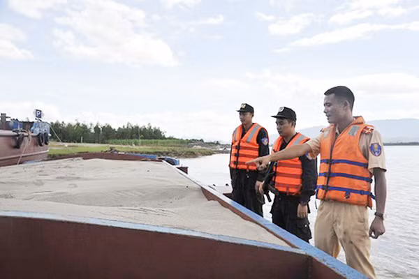 Lực lượng Cảnh sát đường thủy CATP Hà Nội bắt giữ một tàu khai thác cát trái phép