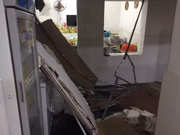 Trần thạch cao trong căn hộ nhà bà Thúy đã bị sập