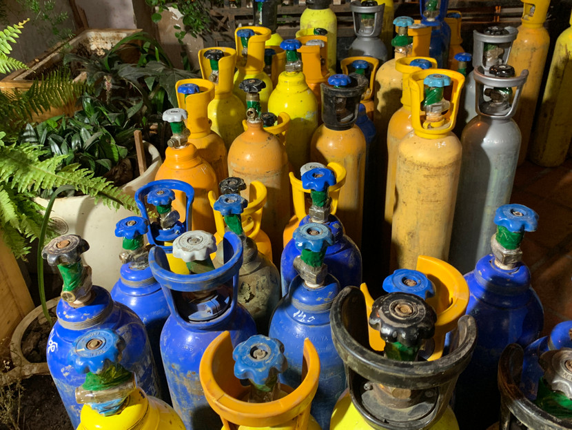 Số bình bơm bóng cười bị phát hiện tại nhà Huy