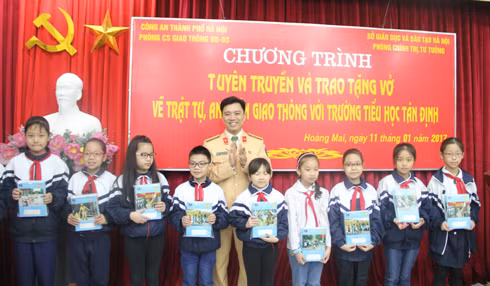 Thiếu tá Nguyễn Mạnh Hùng, Phó trưởng Phòng CSGT cho biết: Nhằm tuyên truyền các quy định của pháp luật về TT, ATGT, làm giảm TNGT trên các tuyến đường tỉnh lộ, đường liên thôn, liên xã, Phòng CSGT đã triển khai nhiều hoạt động tuyên truyền phong phú, đa dạng, trong đó có việc tặng vở cho học sinh.