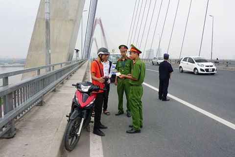 CAP Phú Thượng tuần tra, kiểm soát vi pham TTATGT tại Cầu Nhật Tân
