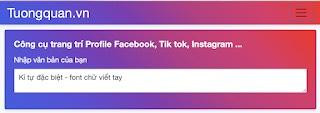Bước 2: Tìm ô “Công cụ trang trí Profile Facebook, TikTok, Instagram,...” và nhập văn bản bạn muốn thay đổi font chữ viết tay.