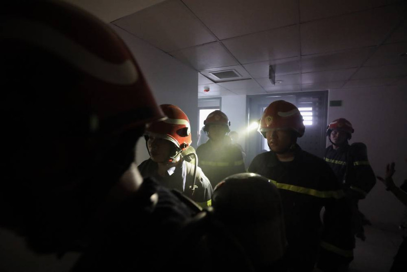 Mọi tình huống phản ứng khi gặp cháy nổ trong căn phòng của các chiến sĩ nhập vai đều có sự giám sát của Thượng tá Lê Hải Hùng, Phó trưởng phòng Chính trị, Trường Đại học Phòng cháy, chữa cháy cùng Trung tá Lê Tấn Châu, Công an TP.HCM.