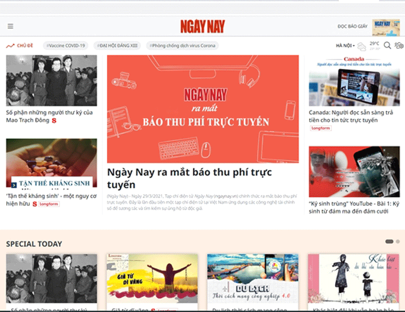 Theo đó, để có thể đọc và lưu trữ một số những bài báo trong chuyên mục Special Today trên Tạp chí điện tử Ngày Nay, bạn đọc sẽ cần thực hiện thanh toán điện tử.