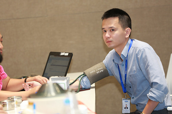 Các cán bộ, nhân viên được kiểm tra sức khỏe và xét nghiệm sàng lọc trước khi hiến máu