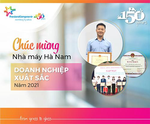 Cụ thể, FrieslandCampina Hà Nam đã vinh dự đón nhận bằng khen “Doanh nghiệp xuất sắc năm 2021” do UBND tỉnh Hà Nam trao tặng trong Hội nghị tuyên dương các doanh nghiệp, cá nhân tiêu biểu nhân dịp kỷ niệm Ngày Doanh nhân Việt Nam (13/10) vừa qua.