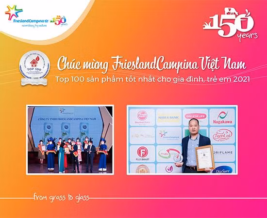 Bên cạnh đó, FrieslandCampina Vietnam còn ghi tên mình vào danh sách “Top 100 - Sản phẩm, dịch vụ tốt nhất cho gia đình, trẻ em” do Báo Lao động và Xã hội tổ chức. Giải thưởng vinh danh các đơn vị, doanh nghiệp có chiến lược ứng biến xuất sắc, vượt qua khó khăn do đại dịch Covid-19 để tạo ra sản phẩm, dịch vụ tốt nhất cho gia đình, trẻ em.