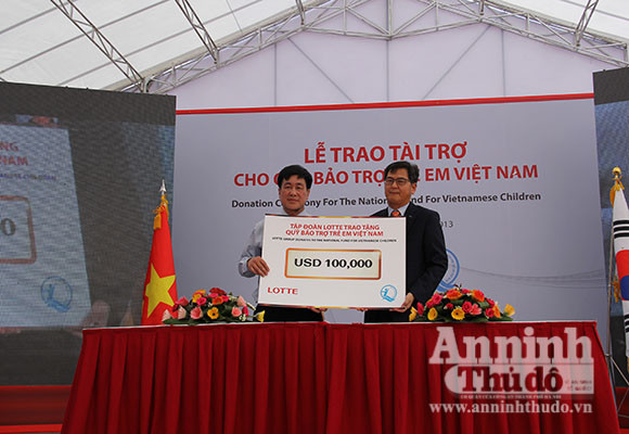 Chiều qua (24-7), tại tòa nhà Lotte Center Hà Nội, Quỹ Bảo trợ trẻ em Việt Nam và Tập đoàn Lotte (Hàn Quốc) tổ chức Lễ ký kết tài trợ cho trẻ em khó khăn với tổng số tiền là 100.000 USD trong 5 năm (2013-2017).