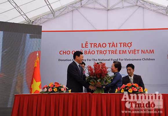 Buổi lễ diễn ra với sự có mặt của lãnh đạo Tập đoàn Lotte Hàn Quốc tại Việt Nam và bà Nguyễn Thị Doan – Phó Chủ tịch nước CHXHCN Việt Nam. Số tiền do Tập đoàn Lotte tài trợ sẽ được đưa vào chương trình Bảo trợ dài hạn cho trẻ em đi học và Cung cấp hệ thống nước sạch cho trẻ em khó khăn tại các vùng khó khăn.