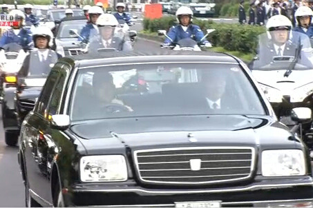 Một đoàn xe khoảng 50 chiếc, trong đó có xe ba bánh của cảnh sát, di chuyển chậm trên tuyến đường diễu hành. Theo giới chức Nhật Bản, họ đã kiểm tra tốc độ và khoảng cách giữa các xe trong đoàn.