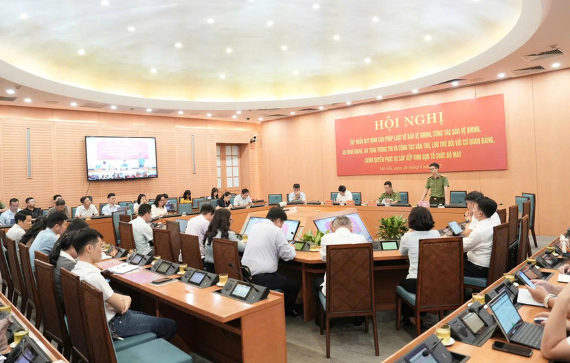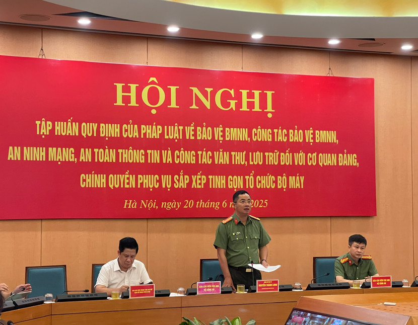 Phát biểu tại Hội nghị, Đại tá Nguyễn Thành Long, Phó Giám đốc Công an thành phố Hà Nội - đại diện cơ quan Thường trực Ban Chỉ đạo bảo vệ bí mật nhà nước thành phố Hà Nội cho biết, công tác bảo vệ bí mật nhà nước, an ninh mạng, an toàn thông tin và công tác văn thư, lưu trữ đối với cơ quan Đảng, chính quyền phục vụ sắp xếp tinh gọn, tổ chức bộ máy là vấn đề rất quan trọng, được Thành phố đặc biệt quan tâm trong quá trình thực hiện chủ trương sắp xếp, tinh gọn bộ máy và trực tiếp chỉ đạo Công an Thành phố tổ chức Hội nghị này. Hậu quả lộ lọt bí mật nhà nước, bí mật an ninh, an toàn thông tin để lại hậu quả rất nặng nề và có nhiều diễn biến phức tạp.