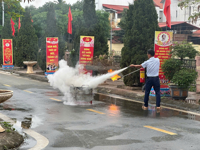 | Hướng dẫn người dân sử dụng bình chữa cháy xách tay dập tắt đám cháy |