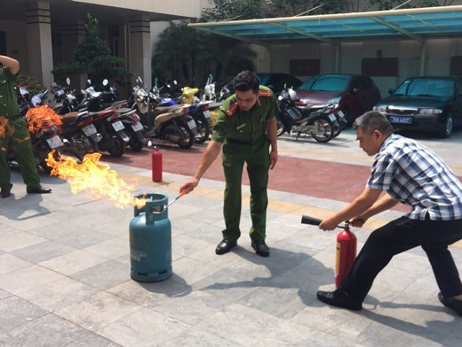 Cùng với đó, trang bị cho các cán bộ công chức, viên chức biết cách sử dụng thành thạo các dụng cụ phương tiện chữa cháy, kịp thời xử lý dập tắt đám cháy ngay từ khi mới phát sinh, biết cách xử lý các tình huống cháy, nổ và sự cố CNCH.