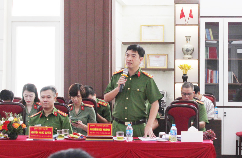 | Đại tá Lê Đức Hùng, Trưởng CAQ Bắc Từ Liêm, đơn vị Cụm trưởng chủ trì phần tham luận |