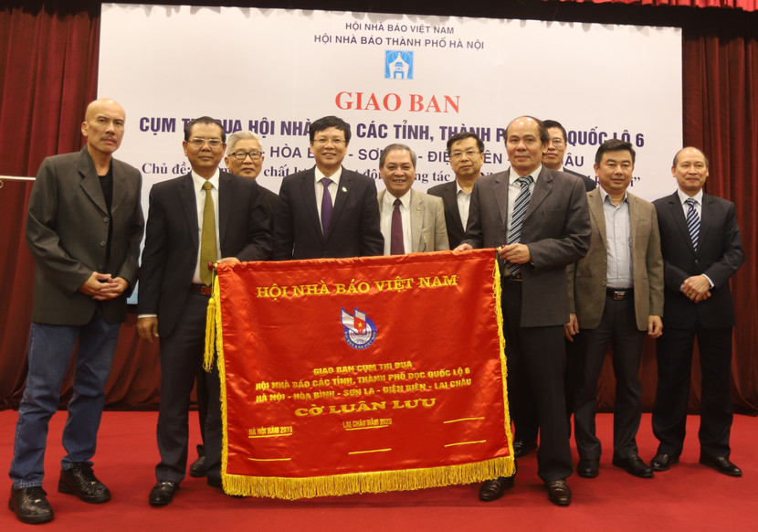 Trao cờ luân lưu đăng cai Hội nghị giao ban Cụm thi đua Hội Nhà báo các tỉnh, thành phố dọc quốc lộ 6 năm 2020 từ Hội Nhà báo Thành phố Hà Nội cho Hội Nhà báo tỉnh Lai Châu