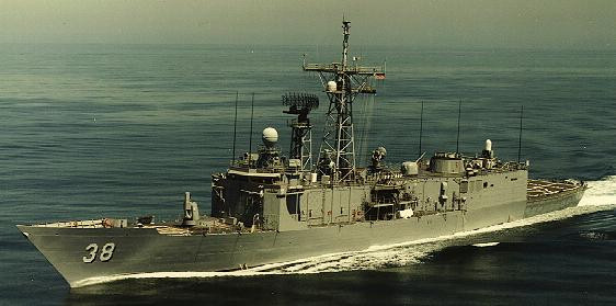 Tàu hộ vệ tên lửa “Coates” chính thức phục vụ trong lực lượng hải quân Mỹ từ năm 1983. Nó có chiều dài 135,9m, rộng 13,5m, lượng giãn nước thông thường 4100 tấn, tốc độ 20 hải lý/h. sau khi chính thức nghỉ hưu nó sẽ được bàn giao cho lực lượng quân dự bị của Mỹ.