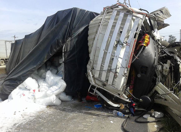 Cú va chạm cũng làm tài xế lái xe tải (chưa rõ danh tính) bị thương nặng và mắc kẹt trong ca bin. Ngay sau đó, người dân đã dùng xà beng cạy cửa để đưa tài xế đi cấp cứu tại bệnh viện.