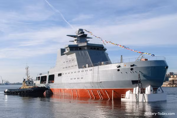 ANTD.VN - Tàu phá băng chiến đấu Ivan Papanin - Dự án 23550 được thiết kế đặc biệt cho điều kiện khắc nghiệt ở Bắc Cực, vượt qua lớp băng dày tới 1,7 mét nhưng cũng có thể hoạt động ở vùng nhiệt đới nếu cần thiết. Dù vậy vũ khí của lớp tàu này khá yếu, không đáp ứng được yêu cầu tác chiến hiện đại.