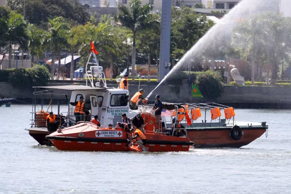 Lực lượng cứu hộ vừa tiếp cận những người bị nạn, dùng vòi rồng phun nước dập lửa. Lực lượng hải quân Mỹ và biên phòng Đà Nẵng ném phao cứu sinh xuống nước, kéo các nạn nhân vào xuồng.