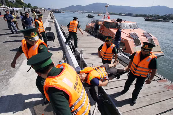 Những bệnh nhân nặng được chuyển đến tàu Bệnh viện Khánh Hoà (HQ 561 - Hải quân Việt Nam) và tàu Mercy để tiếp tục điều trị.