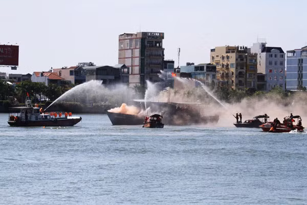 Với tình huống giả định thứ hai, tàu cá với 15 lao động đang di chuyển tránh bão bất ngờ bị chập điện, làm cháy tàu. Nhiều nạn nhân bị bỏng, mắc kẹt phía trong. Một số người hoảng loạn nhảy xuống nước. Lập tức, nhiều lực lượng gồm biên phòng, cảnh sát phòng cháy chữa cháy, Trung tâm phối hợp tìm kiếm cứu nạn hàng hải khu vực 2, cùng hải quân Mỹ trên tàu bệnh viện Mercy của Hải quân Mỹ đang làm nhiệm vụ ở Đà Nẵng đã lập tức lên đường cứu hộ.
