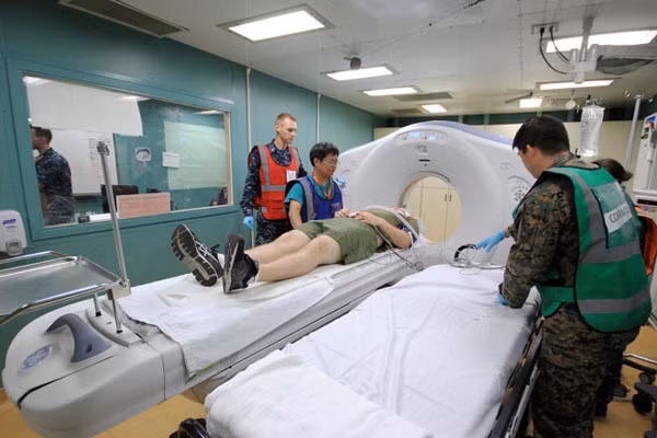Trên tàu Mercy, các bệnh nhân bị bỏng, gãy xương được các bác sĩ điều trị tích cực.