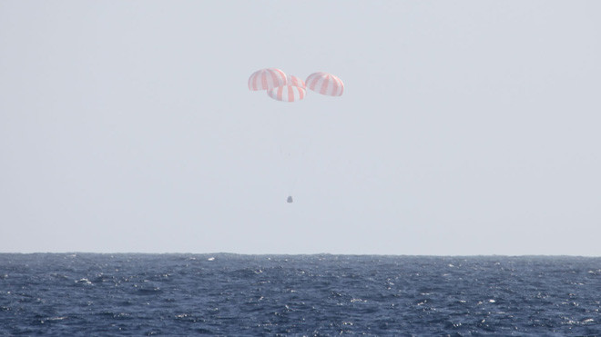 Tàu SpaceX Dragon dùng dù để hạ cánh xuống Thái Bình Dương