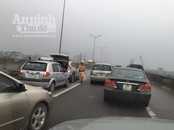 Thông tin với phóng viên ANTĐ tại hiện trường, Đại úy Nguyễn Văn Thành - Đội phó Đội CSGT số 7 cho biết, vụ va chạm khiến chiếc xe ô tô hiệu CRV bị hư hỏng nhẹ, còn chiếc xe taxi bị bẹp đầu. Tuy nhiên, do lưu lượng phương tiện tham gia giao thông những ngày cận Tết lớn, nên đã gây ùn tắc cục bộ ở đường trên cao, hướng từ Mỹ Đình đi Pháp Vân.